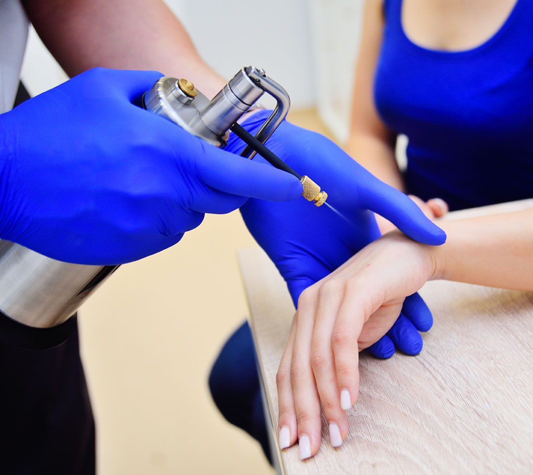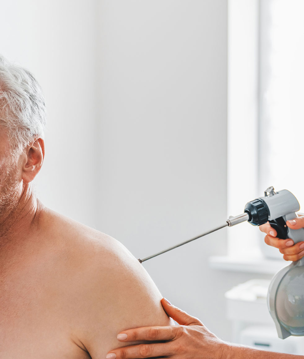 ESWT is a non-invasive treatment that uses acoustic sound waves to stimulate the body’snatural healing processes. It is highly effective for addressingchronic pain and soft tissueinjuries. By delivering focused shockwaves to the affected area, ESWT improves blood flow,reduces inflammation, and promotes tissue repair.